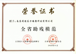 2025/11/26 11月24日,第七次全省自強模范暨助殘模范表彰大會在南京隆重召開。利德東方憑借在扶殘助殘事業中的持續投入與突出貢獻,獲得了“全省助殘模范”榮譽稱號。