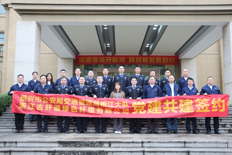 隨后,在熱烈的掌聲中,雙方代表簽署了《黨建共建協議書》。這份協議不僅明確了雙方共建的目標、原則和內容,還規劃了具體的合作項目和活動安排,為后續的深度合作奠定了堅實的基礎。緊接著,進行了激動人心的揭牌儀式。隨著紅綢緩緩落下,“浙江古纖道綠色纖維有限公司-紹興市公安局交通管理局袍江大隊黨建共建基地”的牌子赫然顯現,標志著雙方黨建共建的新篇章正式開啟。