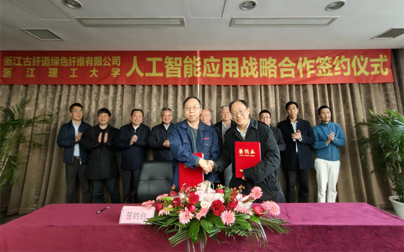 2025年2月28日,浙江古纖道綠色纖維有限公司與浙江理工大學人工智能應用戰略合作簽約儀式,在公司全景會議室隆重舉行。浙江省智能制造專家委員會主任徐紀平、中國工程院院士、浙江理工大學校長陳文興、金浦投資控股集團董事長郭金東、浙江理工大學機械與自動控制學院新昌創新技術研究院院長胡旭東等眾多領導嘉賓齊聚一堂,共同見證這一重要時刻。此次簽約儀式由集團副總裁、公司執行董事徐躍林主持。